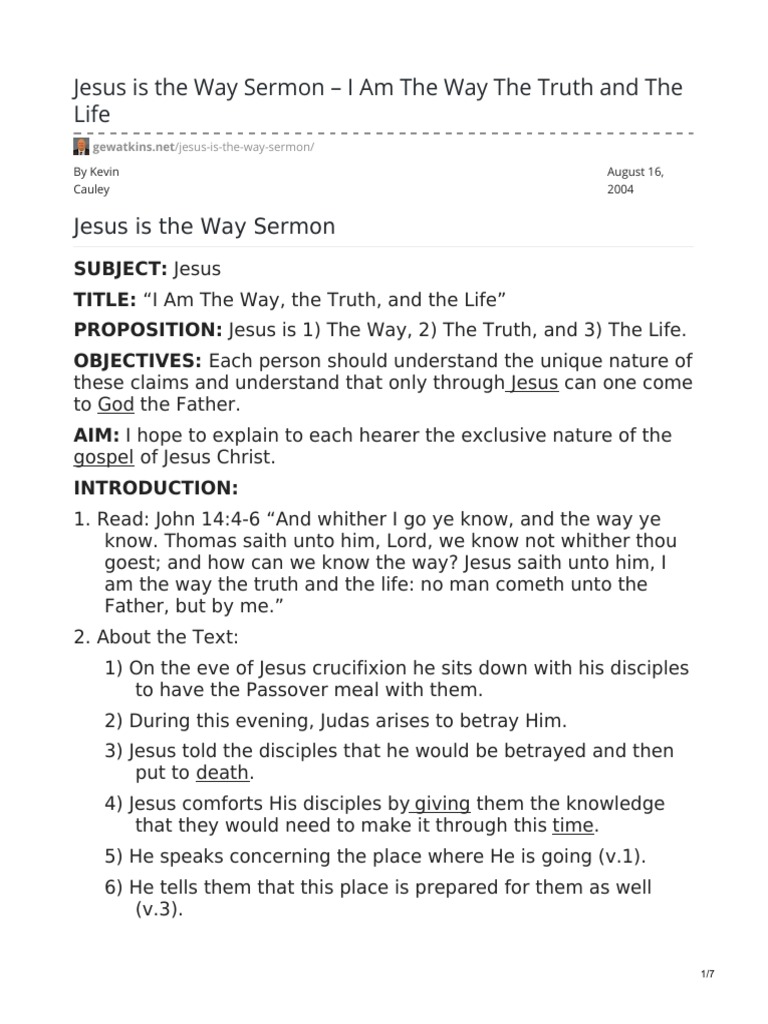 Jesus Is The Way Sermon I Am The Way The Truth And The Life Pdf Eternal Life Christianity God The Father